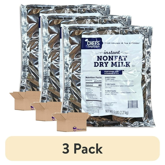 - 3-pack of Chef's Companion Instant Nonfat Dry Milk Value Pack 5 Pound Bulk Bag