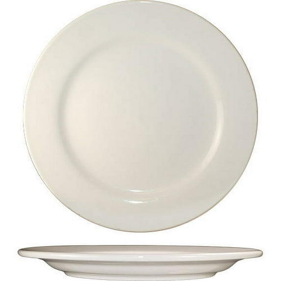 International Tableware Roma Wide Rim Rolled Edge Round Plate American White, 9" Diameter x 3/4" Height, Stoneware |