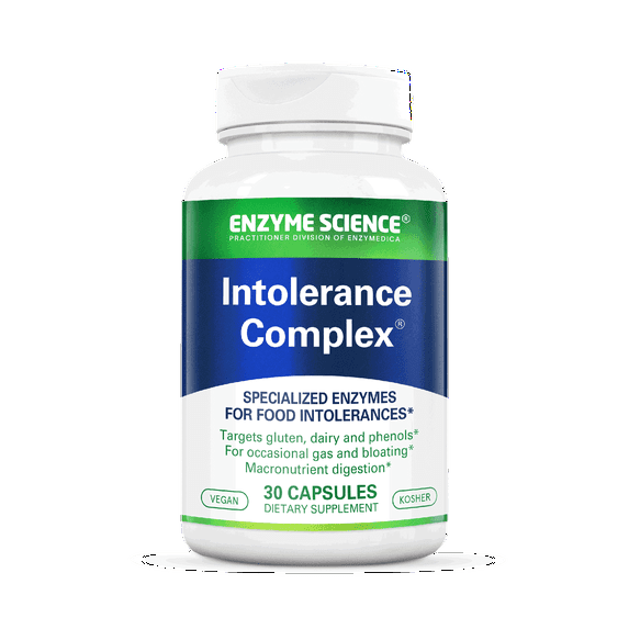 Intolerance Complex offers a broad approach to digestive sensitivities. This unique formula was crafted to cover all of the major food intolerances in a single capsule. Unlike food allergies, which are an immune reaction, food intolerance is a digestive occurrence caused by an insufficient quantity of a particular enzyme to digest the offending food. Intolerance can manifest as occasional diarrhea, bloating, cramping or upset stomach. By supplementing the digestive system with targeted enzymes, the body can more efficiently break down foods to lessen or prevent symptoms that are common to food intolerance. Intolerance Complex gives your body what it needs to enjoy the foods you love.
