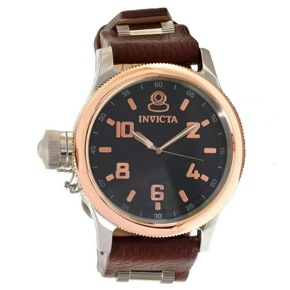 Invicta 10473 Men's Russian Diver Lefty Rose Gold Accents Dark Grey Dial Brown Leather Strap Watch