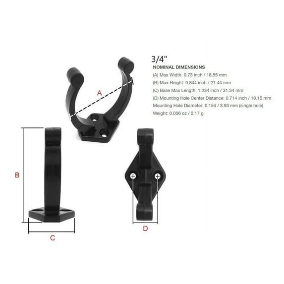 The No-Fuss feature allows you to Snap-It-In and Snap-It-Out. Snap Spring clips are made from strong plastic giving years of reliable use. Holds Quickly and Securely. If you are ordering these for PVC tubes: PVC is measured in “ID” and not “OD”. Please verify the Outer Diameter of the tube before ordering. Clip Size: Choose the Outer Diameter of the Round Tube or Rod the clip needs to fit