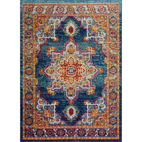 BoutiqueRugs Istanbul Farmhouse Area Rug - Navy, Aqua - 6'7" x 9'