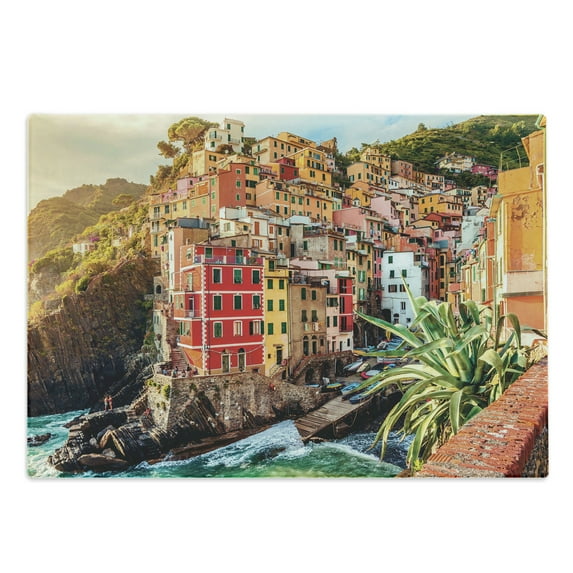 Hero image 0 of Italy Cutting Board, Riomaggiore at Sunset Cinque Terre National Park Cliff and Coast Scenic Panorama, Decorative Tempered Glass Cutting and Serving Board, Large Size, Multicolor, by Ambesonne, 0 of 1