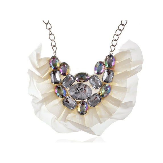 - UNIQUE DESIGN - Beautiful necklace featuring ruffle fabric design with aurora borealis and multicolored rhinestones.
