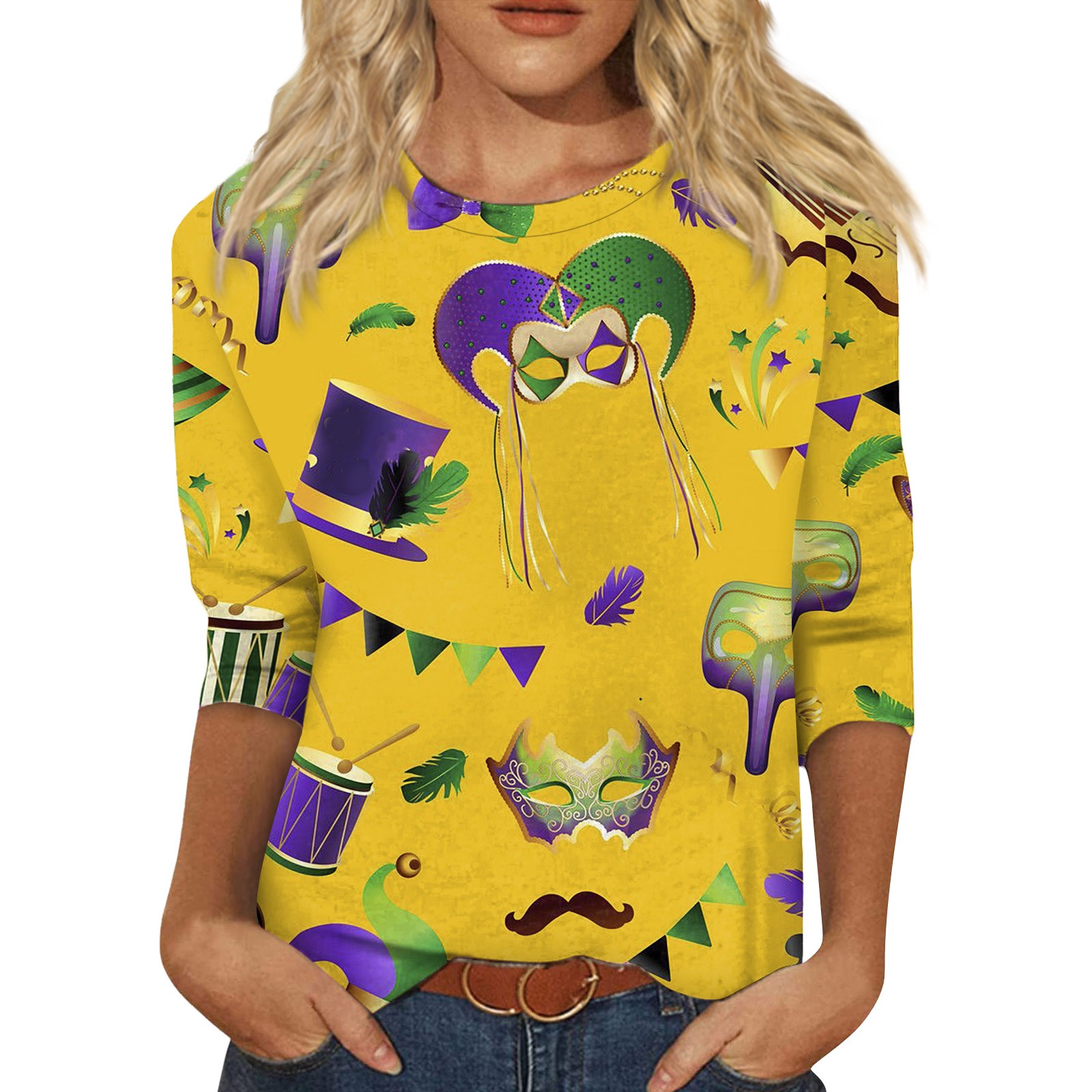 Now$529current price Now $5.29, Was $10.98$10.98+$5.58 shippingPFRNLF Mardi Gras Shirts for Women,Women's Fashion Carnival Printed T-shirt 3/4 Sleeves Blouse Round Neck Casual Top