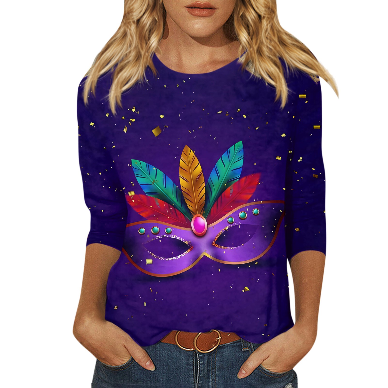 Hero image 0 of JGNGSHN Womens 3/4 Sleeve Tops Mardi Gras Shirts Trendy Crew Neck Blouses Casual Fashion Top, 0 of 5