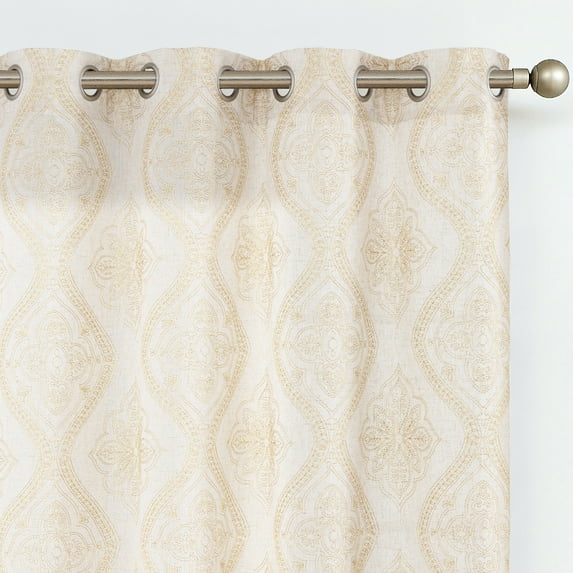 Hero image 0 of JINCHAN Embroidery Flax Linen Curtains for Living Room Grommet Top Window Curtains 2 Panels Light Filtering Drapes for Bedroom Gold on Beige W50 x L96, 0 of 7