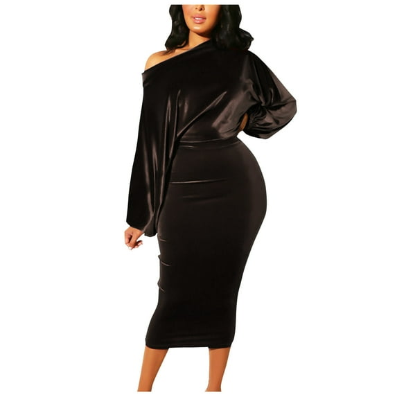 Hero image 0 of JNGSA Flowy Dresses for Women, Cocktail Dresses Plus Size Women Strapless Suede Party Dress With Medium-Length Puff Sleeves, 0 of 4