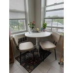 We love it. It matches my dining room. lady assembly friendly. It comes with extra screws and is easy to assemble. the cushions are so comfortable and soft. I will place one more order to make 4 dining chairs in our dining room. these dining chairs are easy to clean. if it’s dirty, use a wet cloth to wipe.