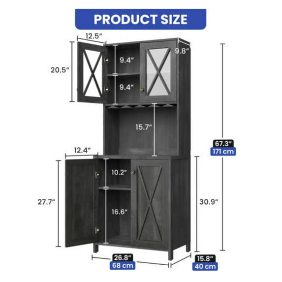 Shipping, arrives in 3+ daysFarmhouse Bar Cabinet for Liquor and Glasses, Dining Room Kitchen Cabinet with Wine Rack, Sideboards Buffets Bar Cabinet L26.89''*W15.87''*H67.3'' Charcoal Grey $155.99