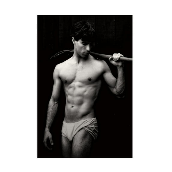 This ready to hang, gallery-wrapped art piece features a black and white photograph of a dancer.