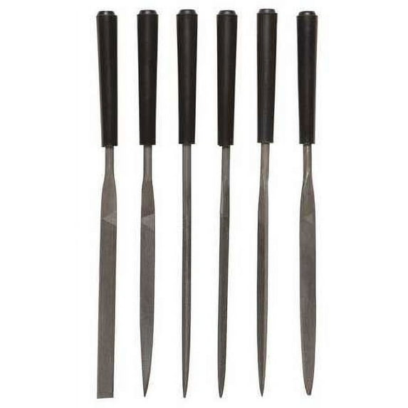 - 6 piece set includes: flat parallel file, flat tapered file, half round file, round file, square and triangle file