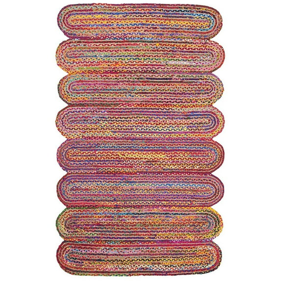 Jaipur Art And Craft Indian Handmade Multicolour Cotton Jute Chindi Rectangle Area Rug (2x6 Sq ft)