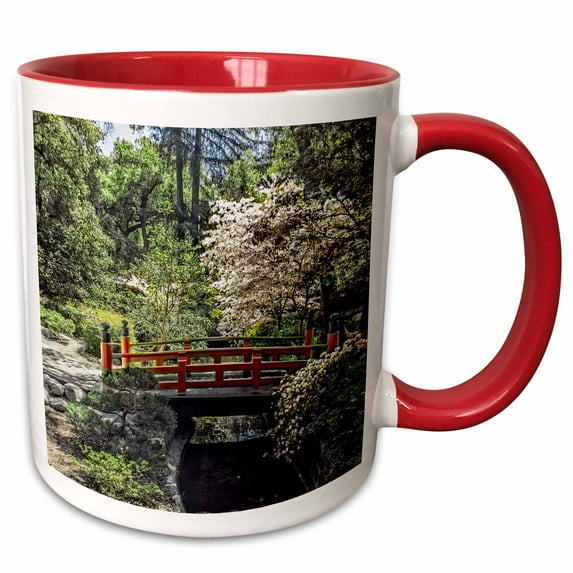 Hero image 0 of 3drose, Japanese Garden Bridge, 11oz Two-tone Red Mug, 0 of 6