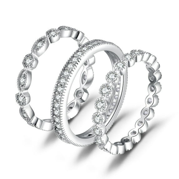 Hero image 0 of Jewelrypalace 14K Gold Plated 925 Sterling Silver Rings for Women, Cubic Zirconia Promise Rings for Her, Stackable Wedding Bands Rings for Women Set Size 4.5, 0 of 7