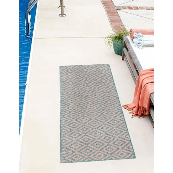 Jill Zarin Outdoor Collection Area Rug - Costa Rica (2' x 6' 1" Runner Pink and Aqua/Light Blue)