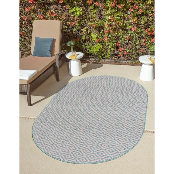 Jill Zarin Outdoor Collection Area Rug - Costa Rica (5' 3" x 8' Oval Pink and Aqua/Light Blue)