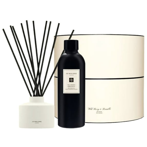 Jo Malone London Wild Berry & Bramble Townhouse Diffuser. SIZE: 11.8 fl oz / 350 mL. Arriving up the sunny pathway, past a tapestry of arching brambles, brimming with red berries. Their fresh juiciness carried on the air. Includes 10 reeds to release scent continuously for approx. four months. For optimal diffusion use all 10 simultaneously.