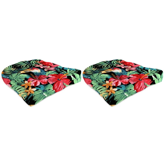Jordan Manufacturing 19" x 19" Rani Citrus Black Tropical Square Tufted Outdoor Wicker Seat Cushion with Rounded Back Corners (2 Pack)Jordan Manufacturing 19 x 19 Rani Citrus Black Tropical Square Tufted Outdoor Wicker Seat Cushion with Rounded Back Corners 2 PackJordan Manufacturing 19 x 19 Adonis Jewel Crimson Medallion Square Tufted Contoured Outdoor Wicker Seat Cushion 2 Pack