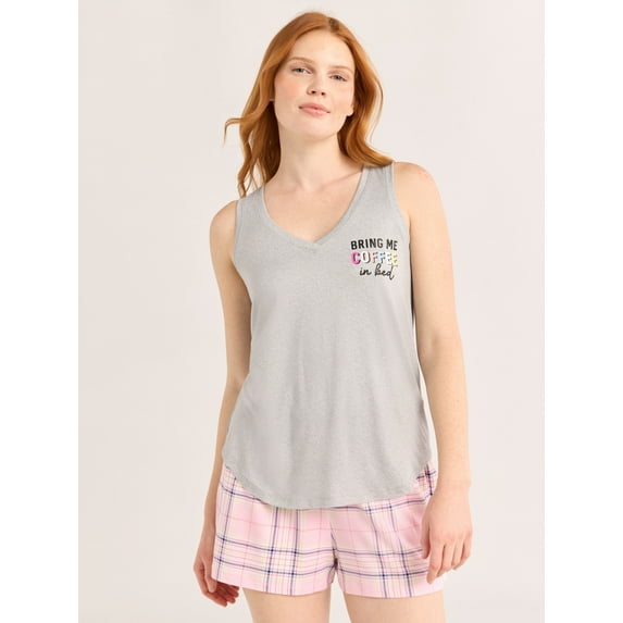 Joyspun Women's Printed Tank Top and Shorts Pajama Set, 2-Piece, Sizes XS-3X