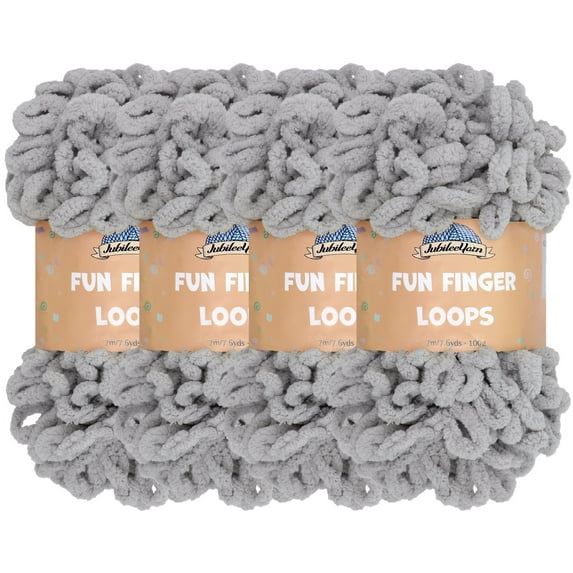 JubileeYarn Fun Finger Loops Yarn - Jumbo Polyester - 100g/Skein - Light Grey - 4 Skeins