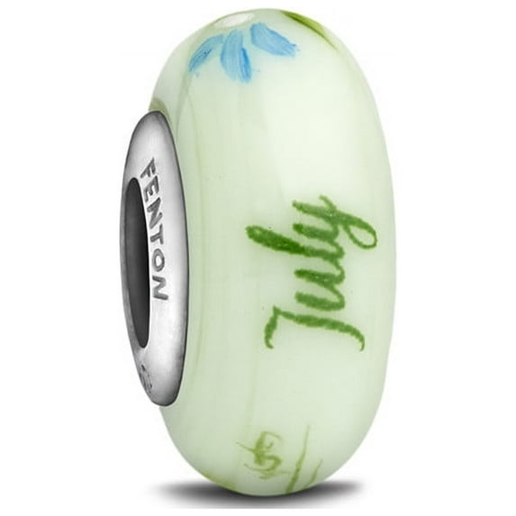 Gratitude, Love, Admiration, Grace. Birth Flower: Rose. Our Heartstrings Collection celebrates the special bonds and moments you experience in your life. Handcrafted glass bead with sterling silver core (approx. 3/16" dia.) embossed with Fenton. Designed by Truda "TJ" Mendenhall.