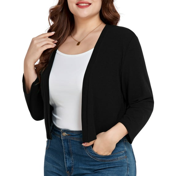 Hero image 0 of JuneFish Women's Plus Size Open Front Cropped Bolero Shrug Lightweight 3/4 Sleeve Cardigan Sweater, 0 of 6