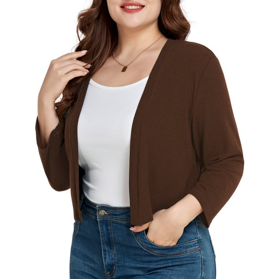Hero image 0 of JuneFish Women's Plus Size Open Front Cropped Bolero Shrug Lightweight 3/4 Sleeve Cardigan Sweater, 0 of 6
