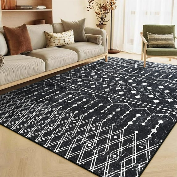 Junovo Area Rug Boho Rugs Geometric Abstract Rugs for Living Room,Black,4'x6'