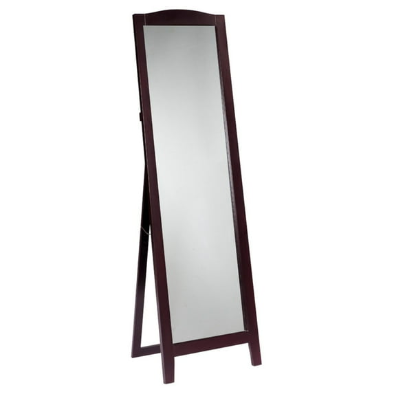 The K & B Furniture Arched Standing Mirror - 19W x 64H in. is a compact full-length mirror with several advantages over a wall-mounted mirror. First, there's no need to drill into your walls, leaving ugly scars. Secondly, this mirror stands at an angle, giving you a head-to-toe view of your outfit while reflecting lots of light throughout the room. The frame is crafted of quality engineered wood with an arched top section and slightly tapered feet for a clean, classic look.