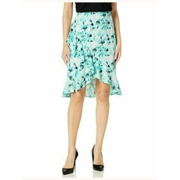 Hero image 0 of KASPER Womens Aqua Ruffled Elastic Waist Floral Knee Length Wear To Work A-Line Skirt 10, 0 of 2
