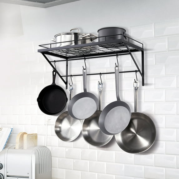 134.2 out of 5 Stars. 13 reviewsRedSwing 29ā Wall Mounted Pot Rack Storage Shelf with 10 Hooks,Kitchen Pots and Pans Hanging Rack Holder for Utensils Cookware Household,Black $25.59