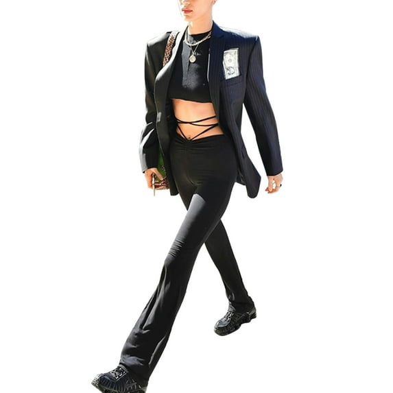 Hero image 0 of KOMOO Women Long Pants High Waist Hallow Out Bandage Trousers Slim Stretchy Straight Leg Pants, 0 of 9