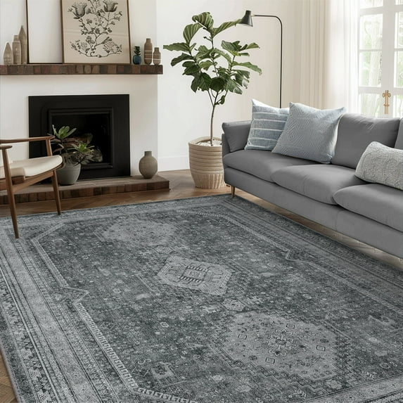 KUETH Rugs for Living Room 5'x7', Non Slip Machine Washable Indoor Large Rug, Low Pile Chenille Print Mat for Bedroom Dining Room Home Office Kitchen, GrayKUETH Rugs Living Room 5 x7 Non Slip Machine Washable Indoor Large Rug Low Pile Chenille Print Mat Bedroom Dining Room Home Office Kitchen GrayKUETH Area Rugs Living Room 3x5 Machine Washable Bedroom Rugs Distressed Vintage Print Gray Large Throw Rug Dining Room Aesthetic Non Slip Carpet Gri