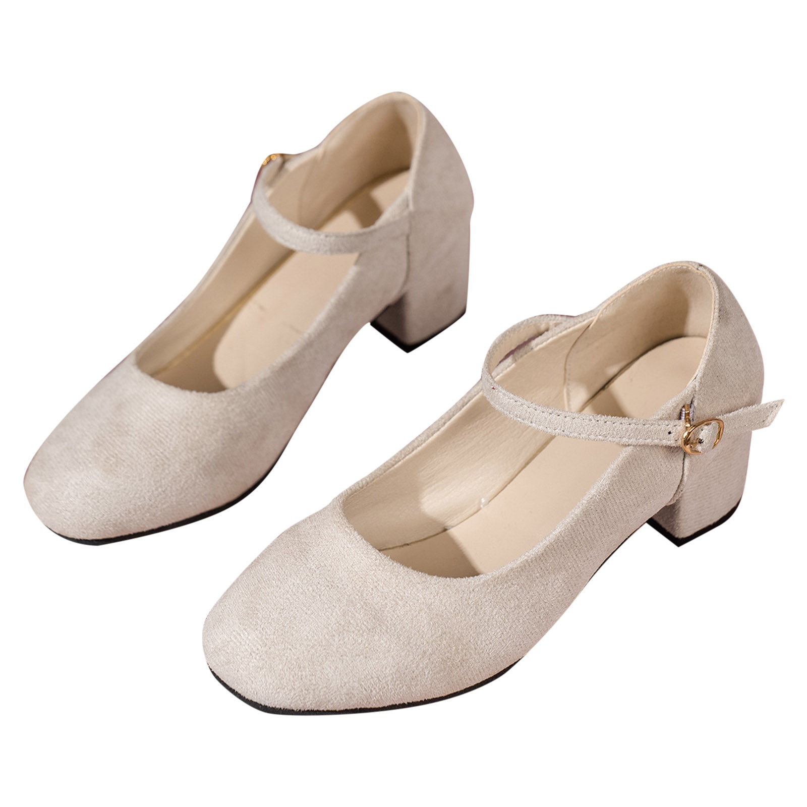 Kayannuo Women's Mary Jane Heels Closed Toe Chunky Heel Round Toe Block High Heel Pumps Women's Pumps Ankle Strap Buckle Chunky Block Heel Shoes