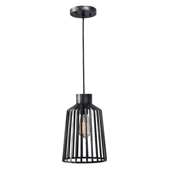 On its own or grouped together for larger areas, the Kenroy Home Coop 1 Light Mini Pendant delivers a stylish industrial design that's as artful as it is functional. This mini pendant light features an exposed bulb design encased in a vertically slatted metal cage. It comes in your choice of available finish and includes 10 feet of wire for installation. A 60-watt incandescent bulb is needed for operation (not included).
