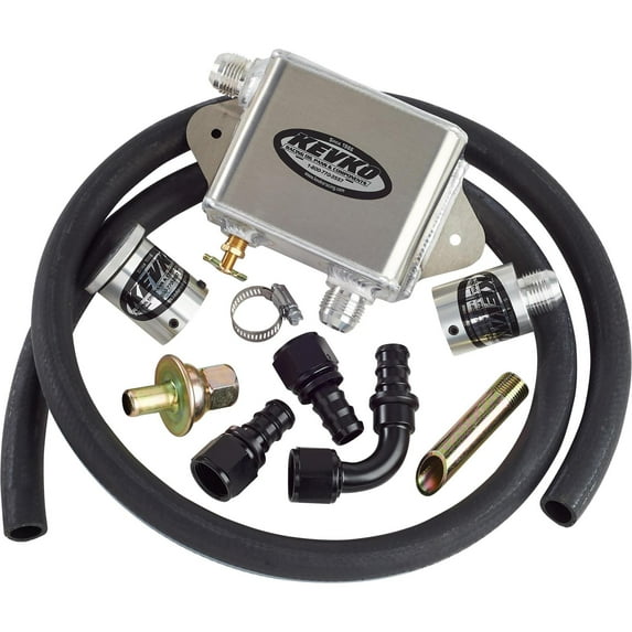 - Kit includes all necessary AN fittings, oil fill cap, rubber hose, check valve, weld in fitting for header and hose clamps