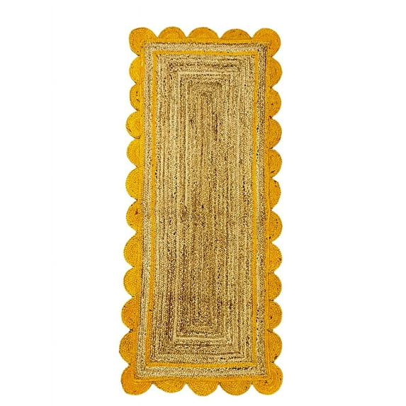 Hero image 0 of Kh Handloom Handmade Braided Natural Pure Jute Area Rug Yellow Boundry ,Floor Scalloped Rug, Village ART, 0 of 5