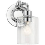 - Design Aesthetics: This Kichler Gunnison wall sconce features a chrome finish and exposed hardware, offering a traditional bath setting with vintage industrial inspirations.