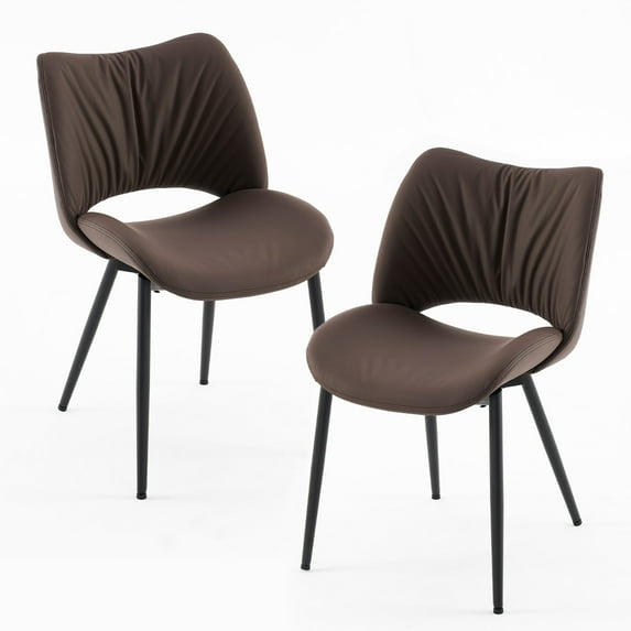 Hero image 0 of Kidol & Shellder Dining Chairs Set of 2, High Back Leather Dining chairs, Armless Kitchen Chairs with Metal Black Legs for Living Room, Kitchen, Dining Room, Brown, 0 of 6