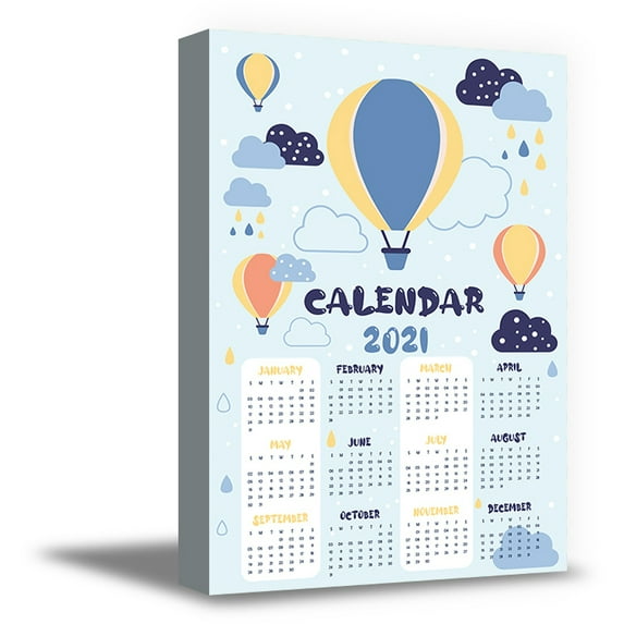 Kids Bedroom Canvas Art 2021 Calendar for Girls Boys Play Room Wall Décor Balloons in Sky Nursery Gifts for Children