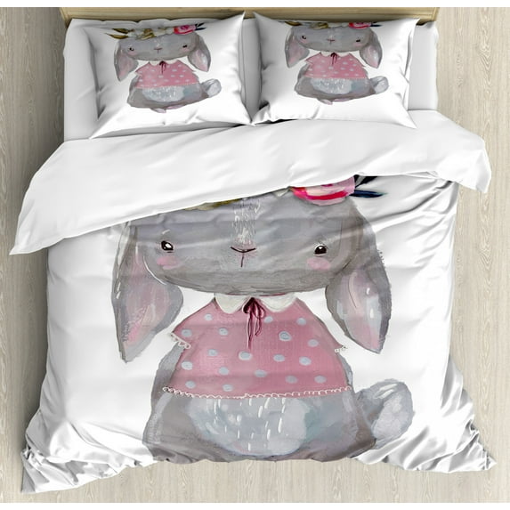 Hero image 0 of Kids King Size Duvet Cover Set, Young Girl Summer Hare in Oil Painting Style with Flowers on Her Head Pink Cheeks, Decorative 3 Piece Bedding Set with 2 Pillow Shams, Multicolor, by Ambesonne, 0 of 3
