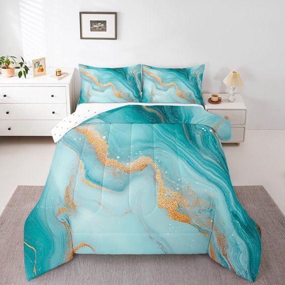 Hero image 0 of Marble Quilt Twin Size Stone Pattern Fluid Bedding Set Bronzing Marbling Texture Comforter Set Modern Abstract Art Bedding Comforter Sets Adults,Teal, 0 of 6