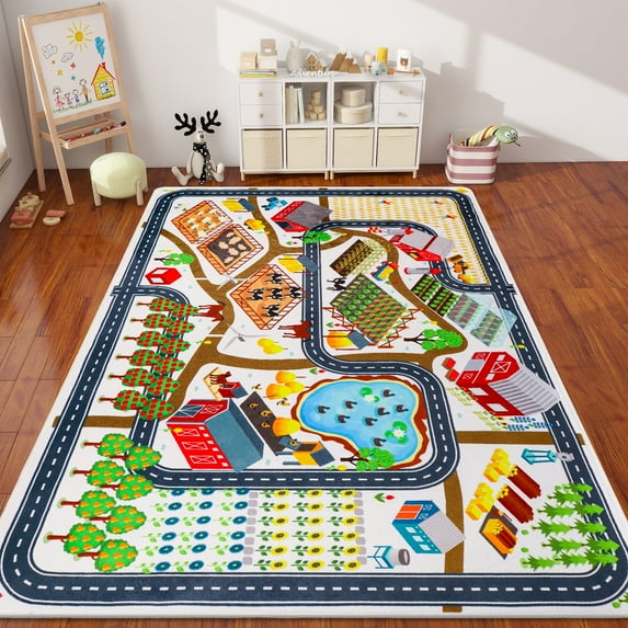 - 💙【Perfect Size for Play】💙With a perfect size of 39.4"×59" / 59"×78.7", this kids road play rug offers plenty of space for multiple children to play together, making it perfect for both individual and group play, and offers ample space for kids to play with their toy cars, explore the village map, and interact with farm animals and plants. It’s the ideal size for playrooms, bedrooms, nurseries, and family areas, making it a versatile addition to any home