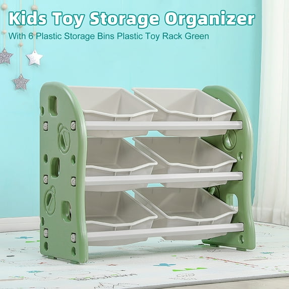 Kids Toy Storage Organizer With 6 Plastic Storage Bins Plastic Toy Rack Green