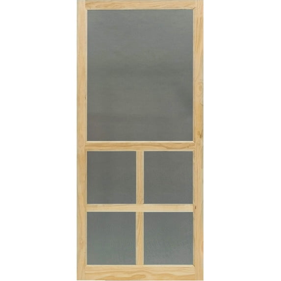 Our wood screen doors are an affordable way to add classic, traditional style to your home. We make our doors from clear, stain-ready Pine with double-dowel construction for added durability. The door are unfinished and we recommend that you stain or treat the door to prevent warping. The screen is a black color, aluminum screen held in with screen mold. Please note the hardware is not included.
