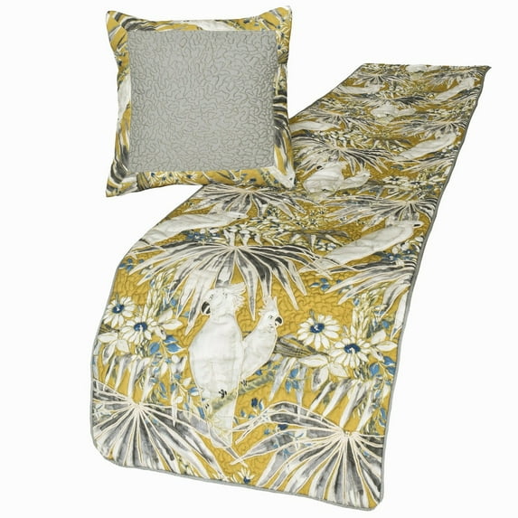 Hero image 0 of King / Queen / Twin Grey & Yellow Decorative CA King 86"x18" Bed Runner With Pillow Cover, Cockatoo Bird & Quilted Bed Scarf on Cotton fabric - Cockatoo Love, 0 of 4