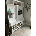 15 out of 5 Stars. 1 reviewsShipping, arrives in 3+ daysPrepac White Hall Tree with Bench and Shoe Storage, 60"W x 77"H x 15.5"D - 24 Shoe Cubby, Mudroom Bench with Storage and Hooks $299.99 Was $334.04
