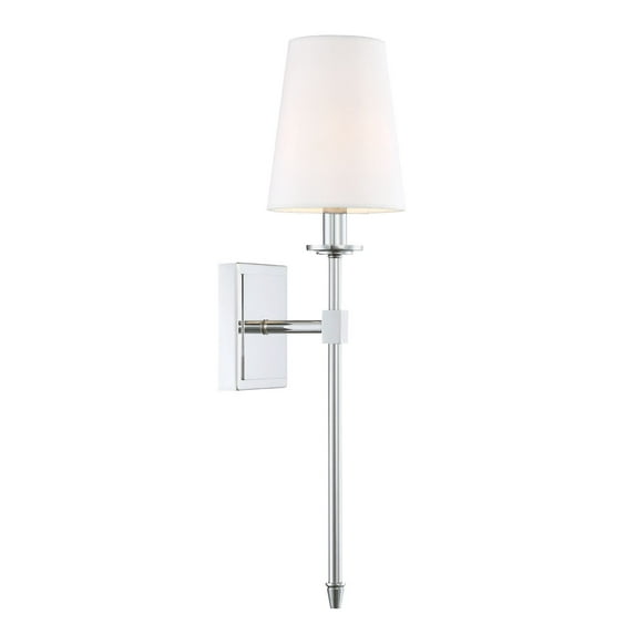 - [MID CENTURY MODERN DESIGN] This wall sconce embodies sophistication, showcasing a upscale chrome finish and superior white conic fabric hardback linen shade to instantly upgrade your bathroom or powder room. The slender body design and long detailed stem add an artistic touch, making it a top choice amongst designers and builders