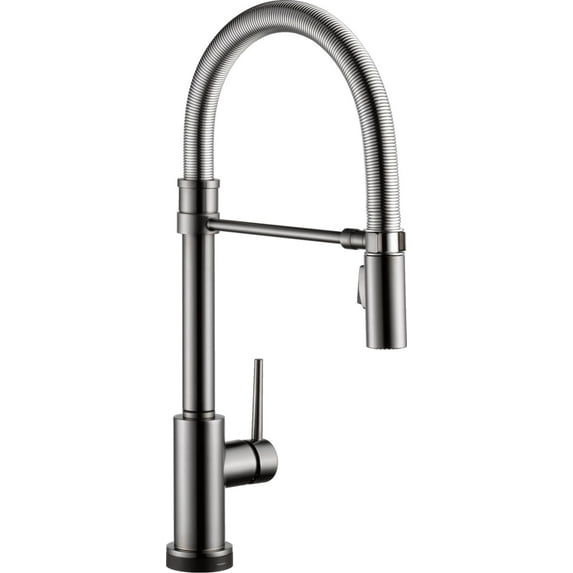 Delta Trinsic Single Handle Pull-Down Spring Spout Kitchen Faucet with Touch2Oî Technology in Black StainlessDelta Trinsic Single Handle Pull Down Spring Spout Kitchen Faucet with Touch2O Technology in Black StainlessDelta 9659T DST Trinsic Single Handle Pull Down Spring Spout Kitchen Faucet with Touch2O Technology Chrome